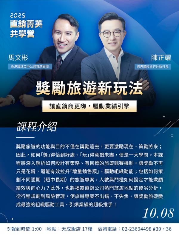 第五場講座10/08馬文彬X陳正耀【獎勵旅遊新玩法】