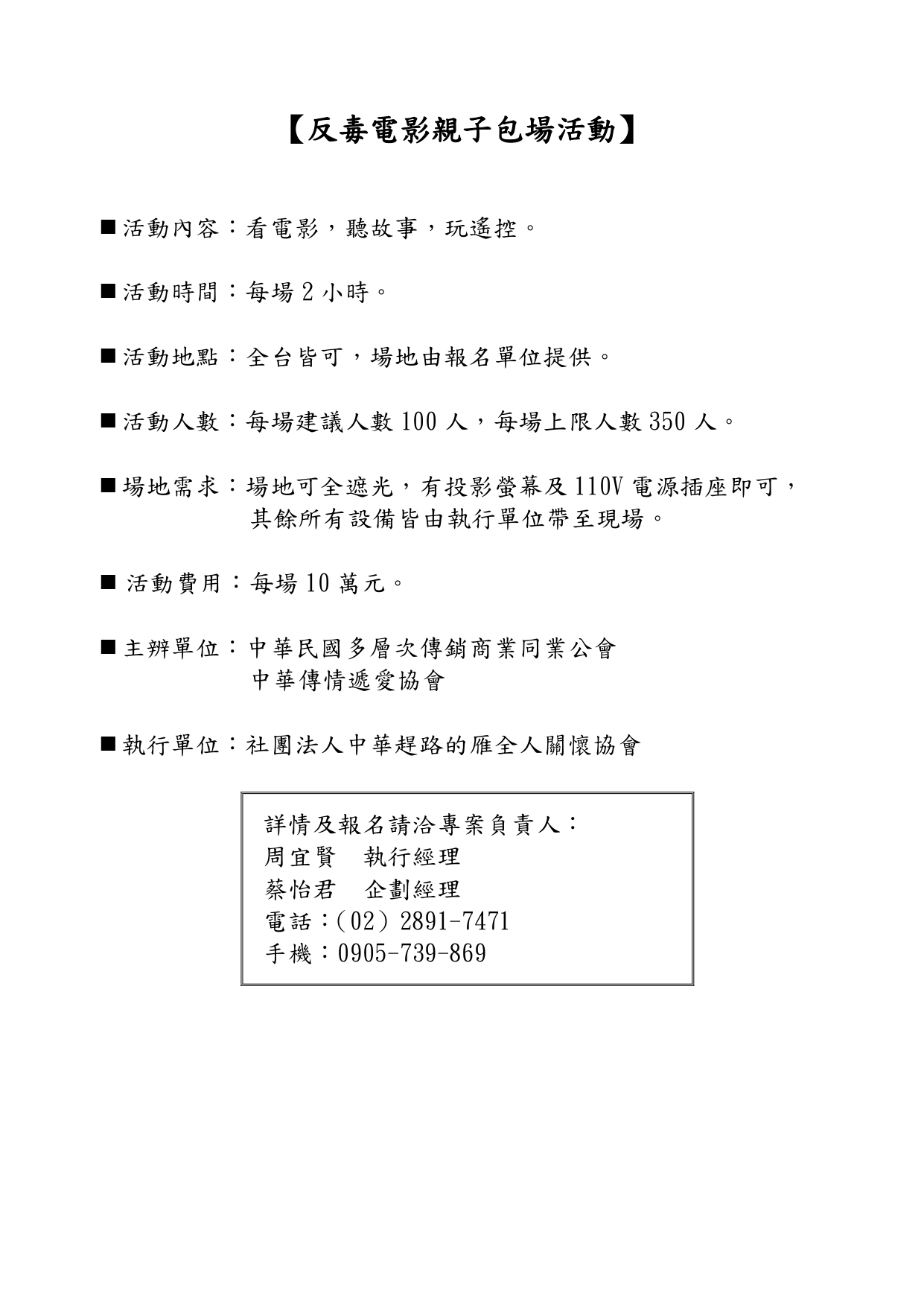 【反毒電影親子包場】活動發起,敬邀踴躍共襄盛舉,讓愛傳出去!