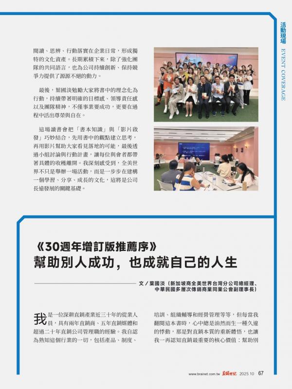 後記:直銷世紀10月號-全美讀書會分享篇(如附件檔)