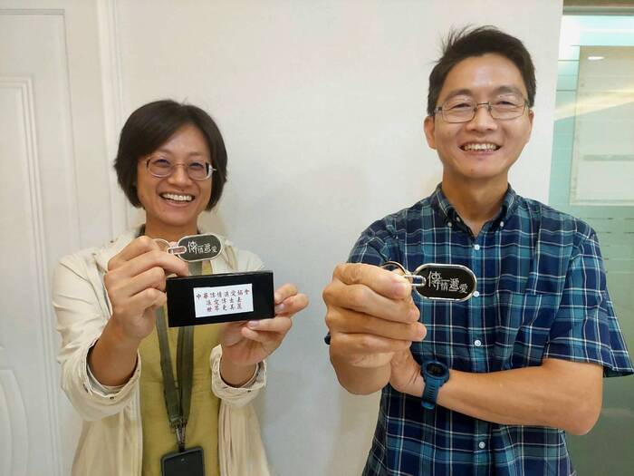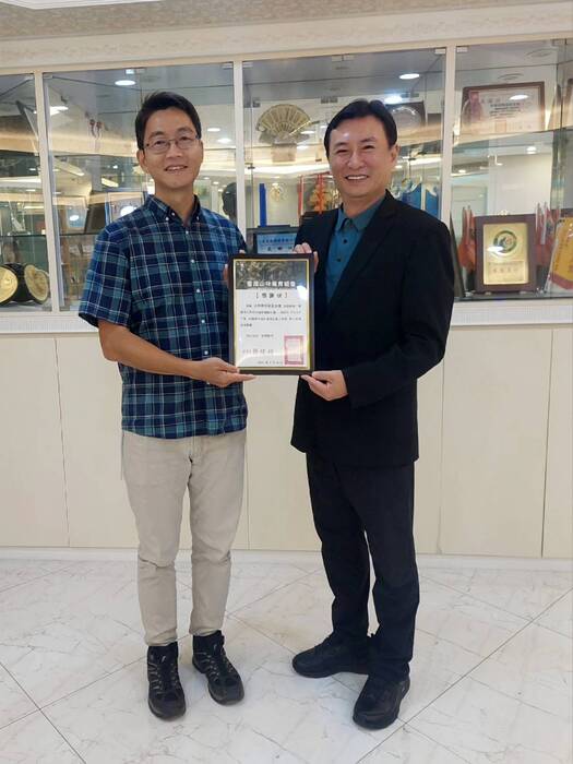台灣山林復育協會榮譽理事長蔡智豪致贈感謝狀予本會吳廣中秘書長留存,本會並回贈傳情遞愛鎖匙圈蔡賢伉儷,讓愛傳出去,世界更美麗!