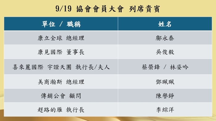 113.09.19召開第三屆第五次理監事會暨第三屆第三次會員大會假台北天成大飯店天采廳舉行。