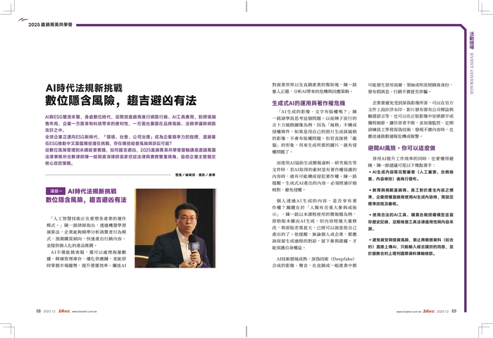 【2025直銷菁英共學營】第六場講座陳一銘&吳家欣主講【AI時代法規新挑戰-數位隱含風險,吉避凶有法】