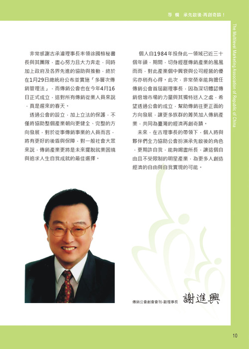 創會謝副事長祝賀詞_承先啟後,再傳奇蹟!