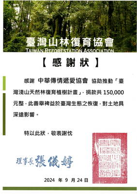 113.10.08贊助台灣山林復育協會—大肚山森林復育中心及海岸天然林復育植樹愛山林計劃